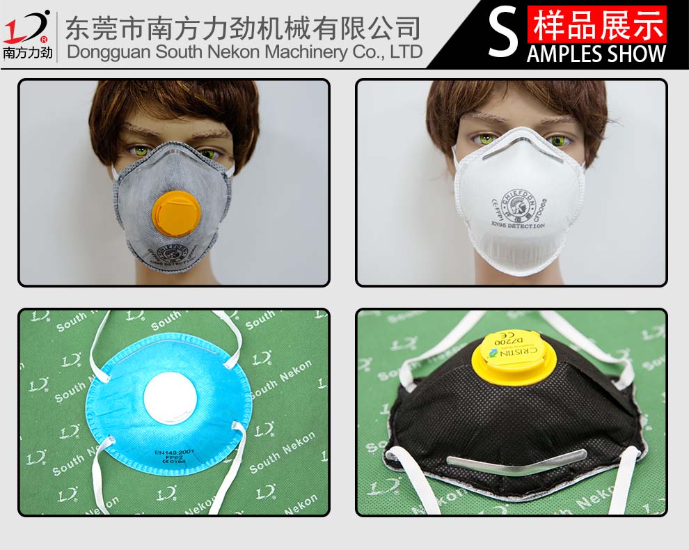 南方力勁全自動杯型口罩裝配機(jī)使用旋轉(zhuǎn)工站式組裝。可同時完成耳帶成型及耳帶焊接、鼻梁條沖切成型及焊接、呼吸閥自動裝配焊接。可以省去3-5個人工,每分鐘可生產(chǎn)口罩20-25個,采用PLC控制系統(tǒng),觸摸屏設(shè)置,操作簡單快捷,可單機(jī)使用,也可聯(lián)動上工位機(jī)一起工作。